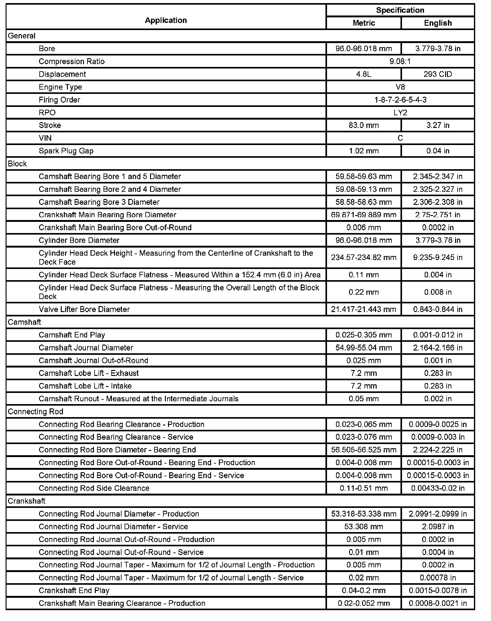 Engine Mechanical Specifications (RPO LY2 VIN C) (Part 4):