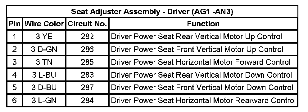 Seat Adjuster Assembly - Driver (AG1 -AN3)