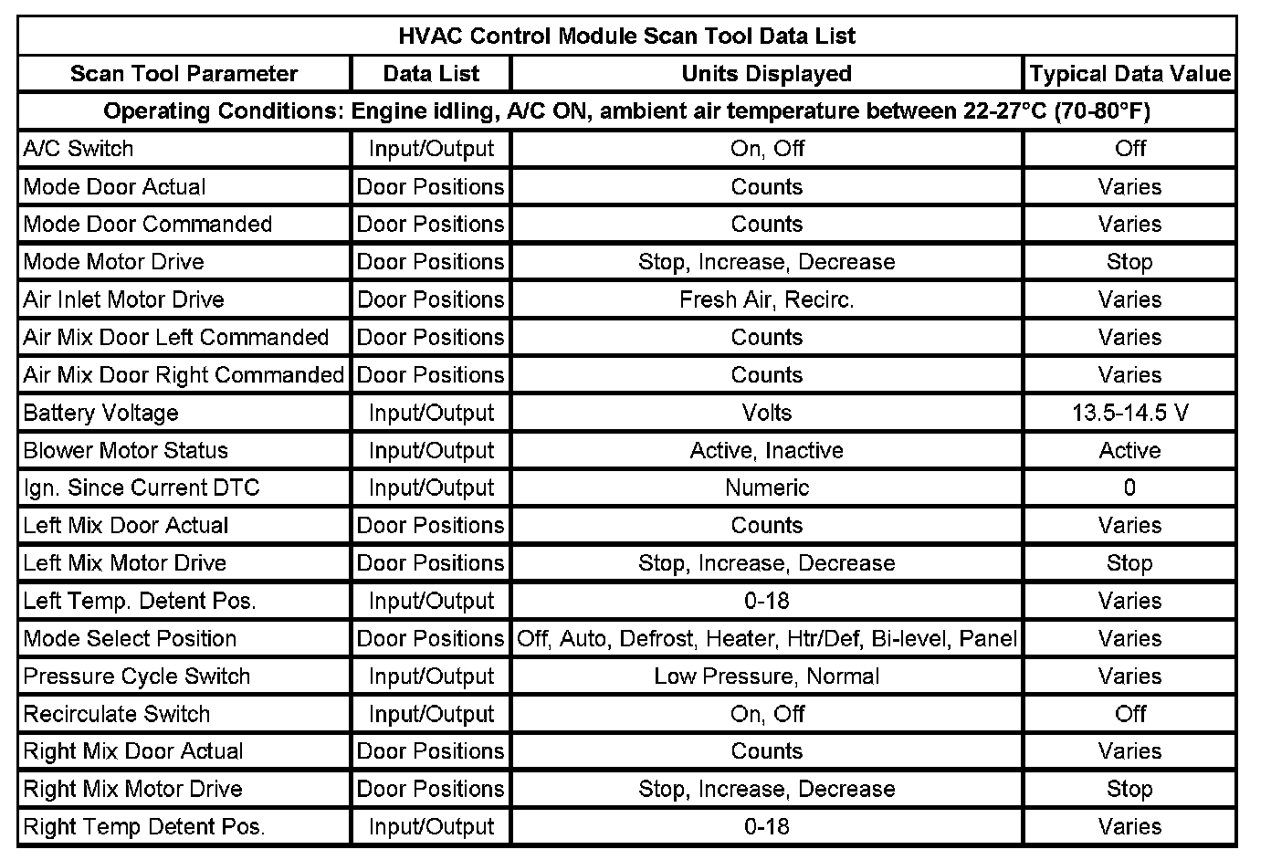 Scan Tool Data List