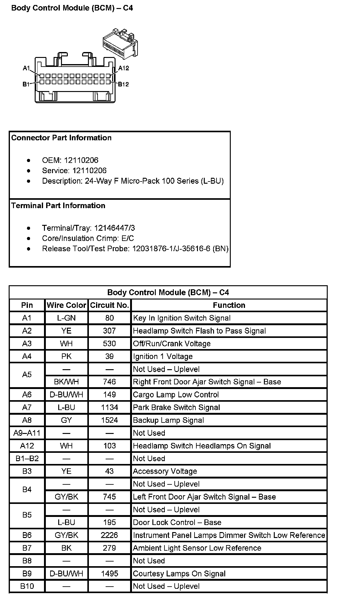 Body Control Module (BCM) - C4 (Pin A1 To B10):