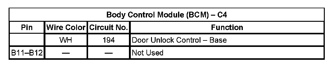 Body Control Module (BCM) - C4 (Pin B12):