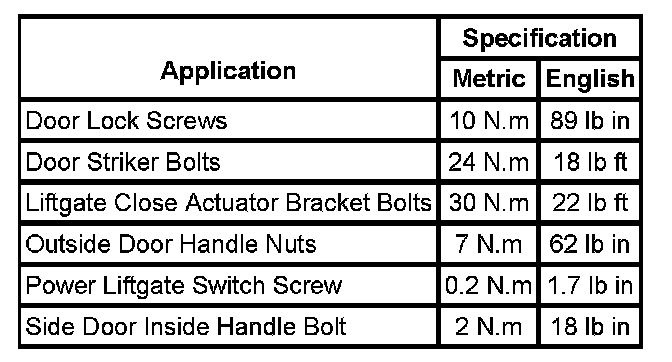 Fastener Tightening Specifications