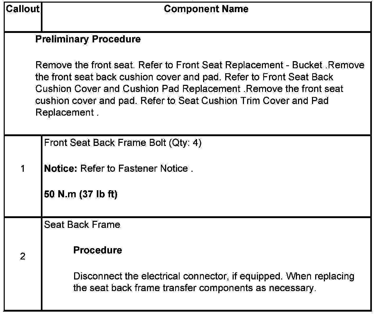 Front Seat Back Frame Replacement