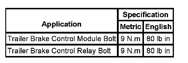 Fastener Tightening Specifications: