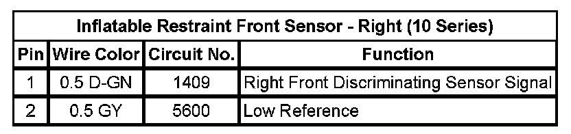 Inflatable Restraint Front Sensor (-10 Series)