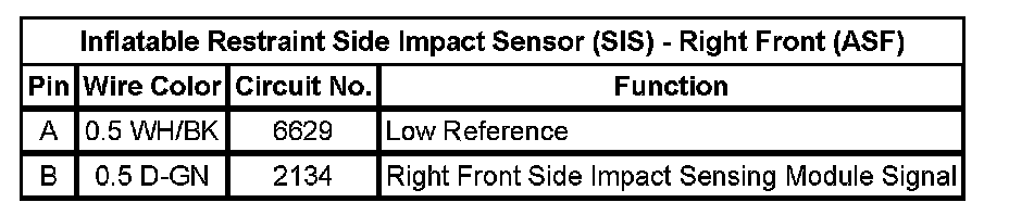 Inflatable Restraint Side Impact Sensor (SIS) - Right Front (ASF)