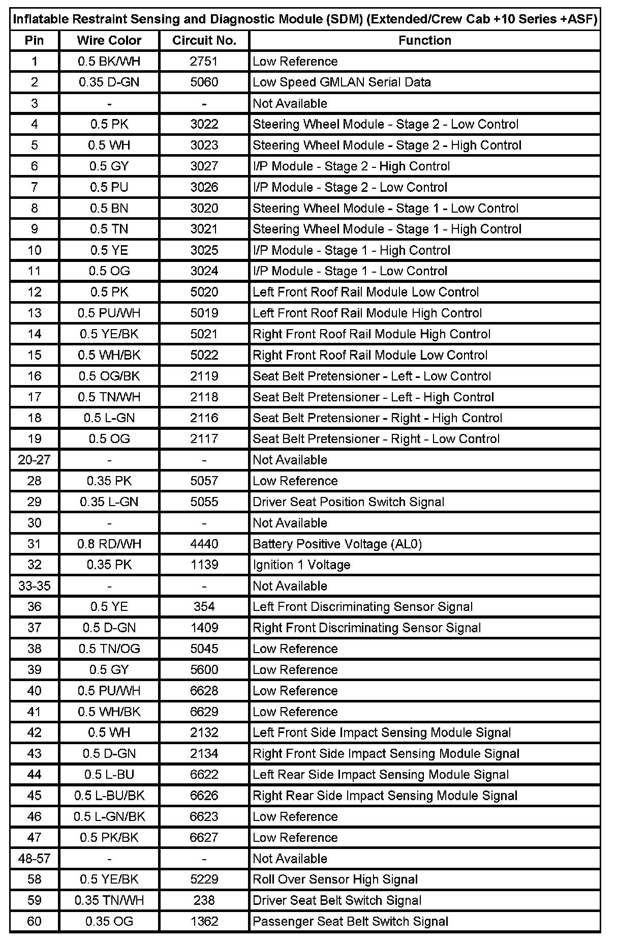 Inflatable Restraint Sensing and Diagnostic Module (SDM) (Extended/Crew Cab +10 Series +ASF)