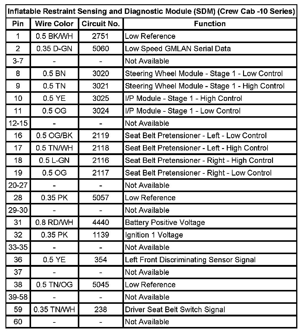 Inflatable Restraint Sensing and Diagnostic Module (SDM) (Crew Cab -10 Series)