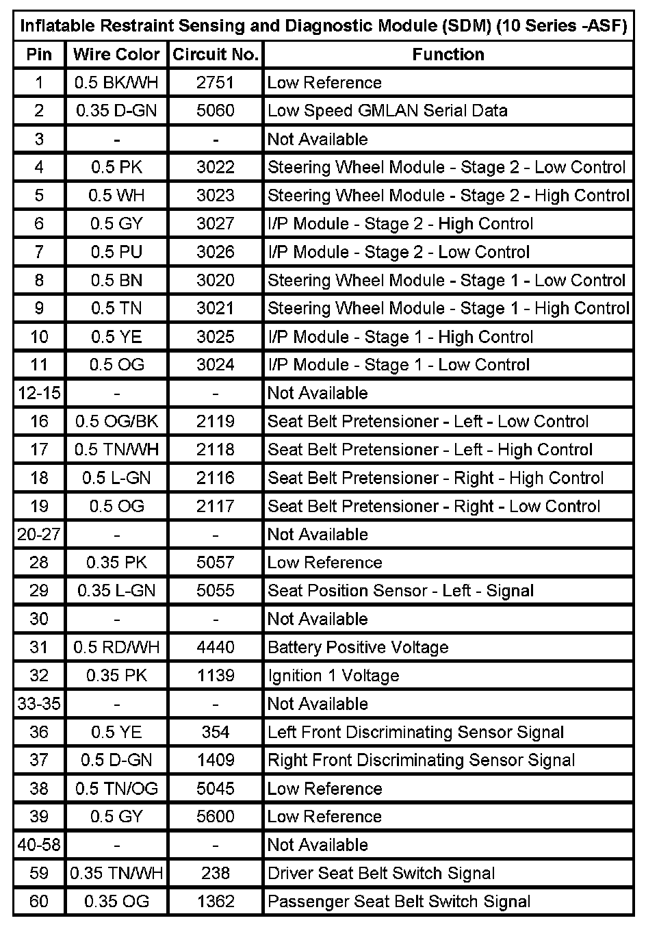 Inflatable Restraint Sensing and Diagnostic Module (SDM) (10 Series -ASF)