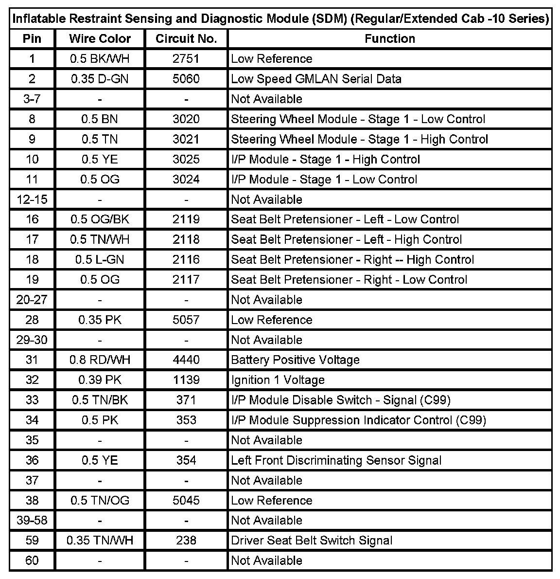 Inflatable Restraint Sensing and Diagnostic Module (SDM) (Regular/Extended Cab -10 Series)