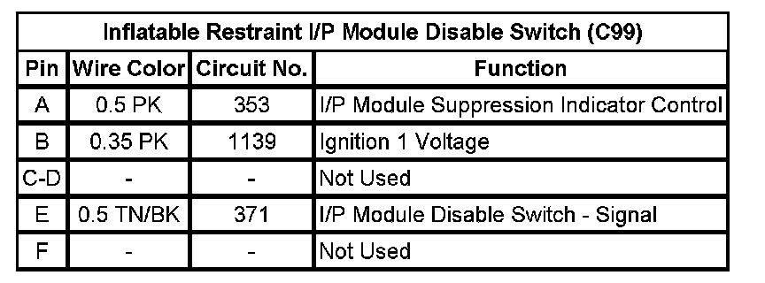 Inflatable Restraint I/P Module Disable Switch (C99)