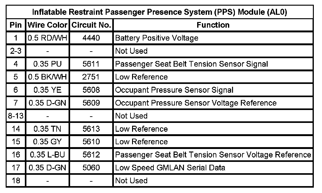 Inflatable Restraint Passenger Presence System (PPS) Module (AL0)