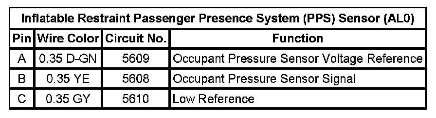 Inflatable Restraint Passenger Presence System (PPS) Sensor (AL0)