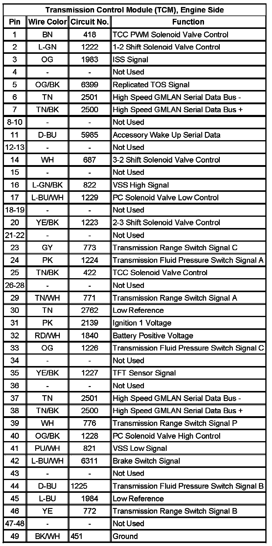 Transmission Control Module (TCM), Engine Side: