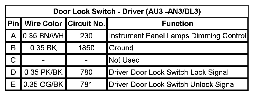 Door Lock Switch - Driver (AU3 -AN3/DL3)