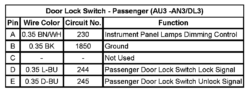 Door Lock Switch - Passenger (AU3 -AN3/DL3)