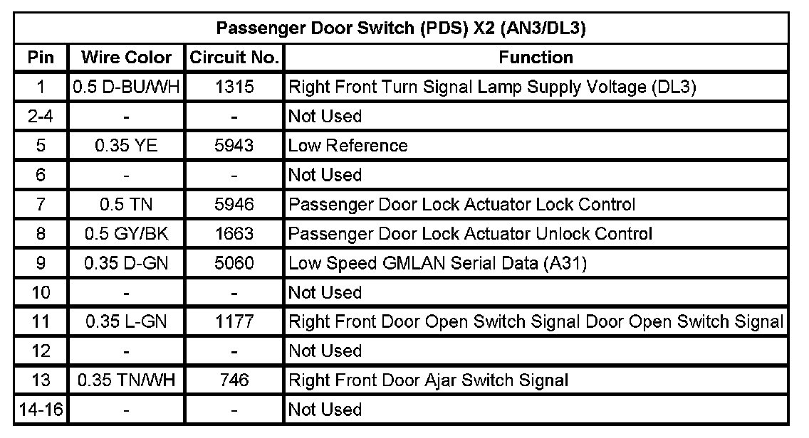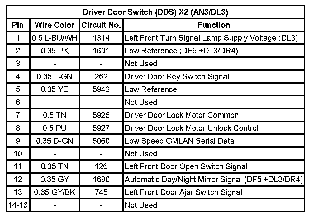 Driver Door Switch (DDS) X1 (AN3/DL3)