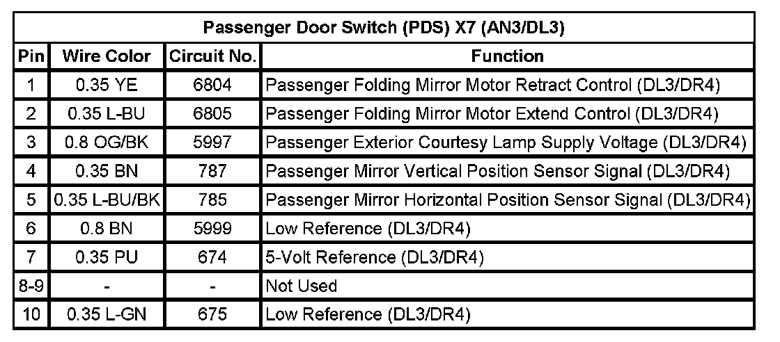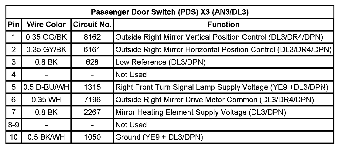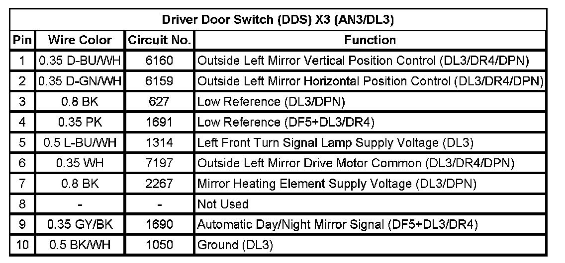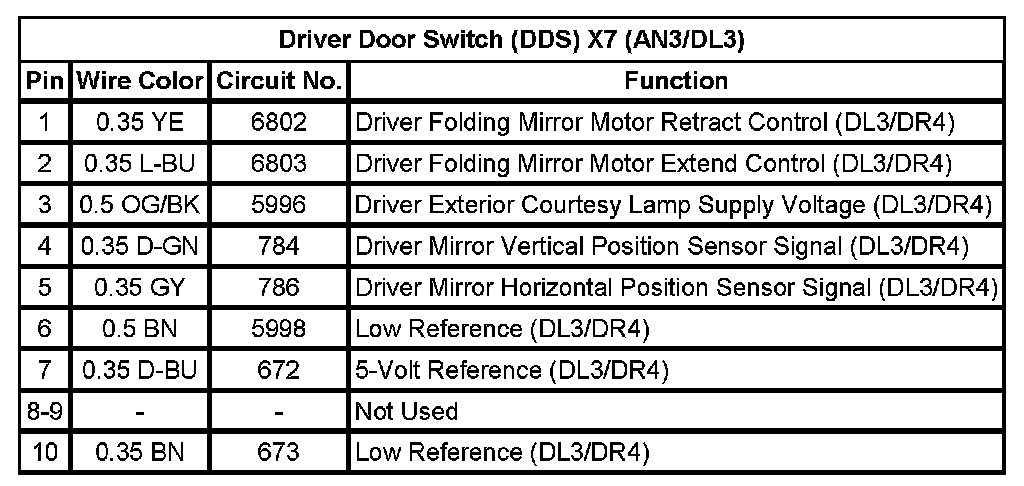 Driver Door Switch (DDS) X3 (AN3/DL3)