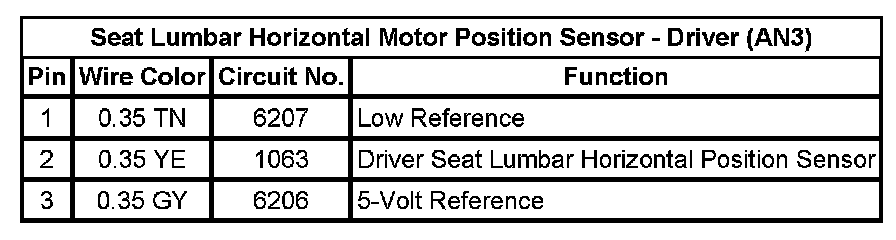 Seat Lumbar Horizontal Motor Position Sensor - Driver (AN3)
