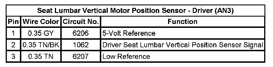 Seat Lumbar Vertical Motor Position Sensor - Driver (AN3)
