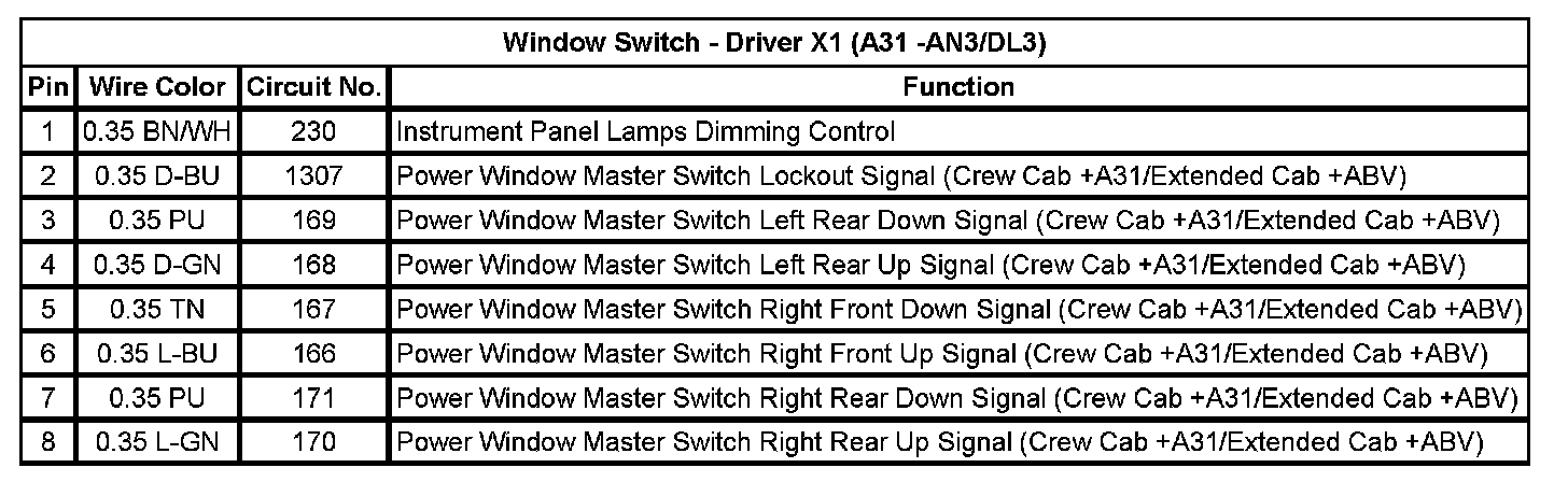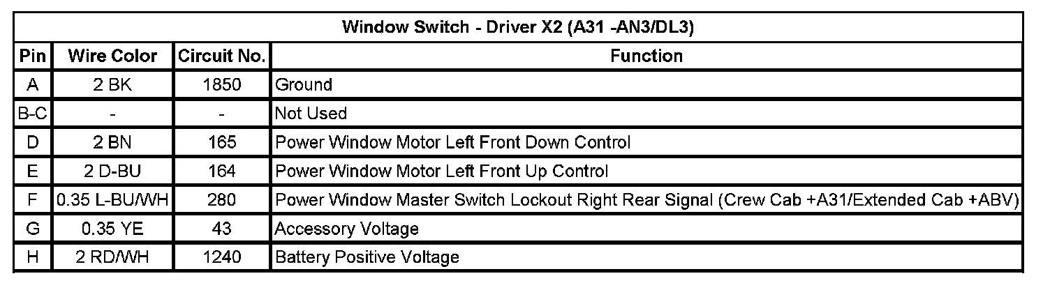 Window Switch - Driver X2 (A31 -AN3/DL3)