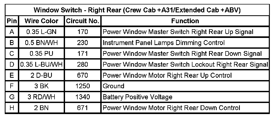 Window Switch - Right Rear (Crew Cab +A31/Extended Cab +ABV)