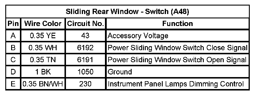 Sliding Rear Window - Switch (A48)