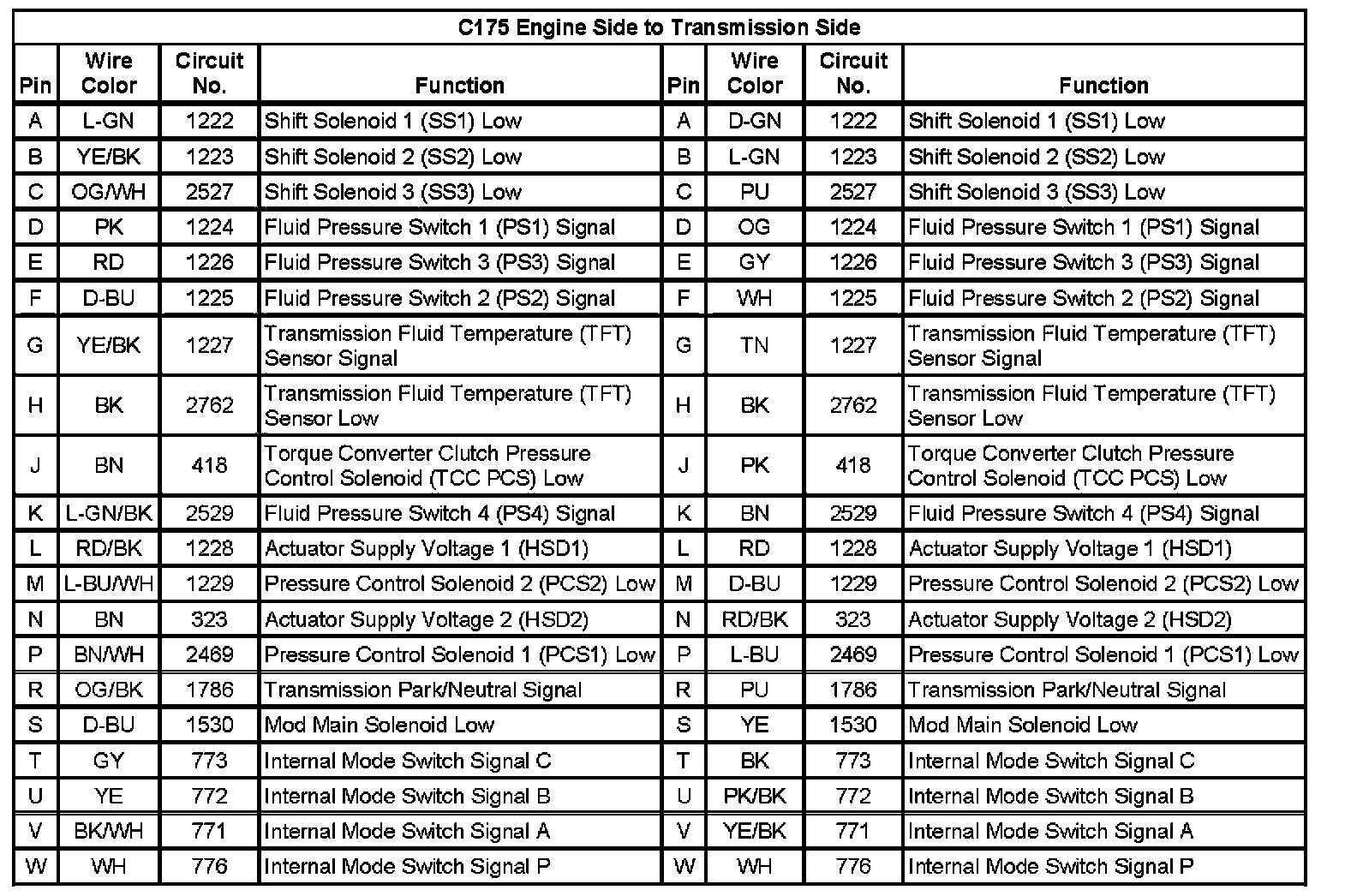 C175 Engine Side to Transmission Side: