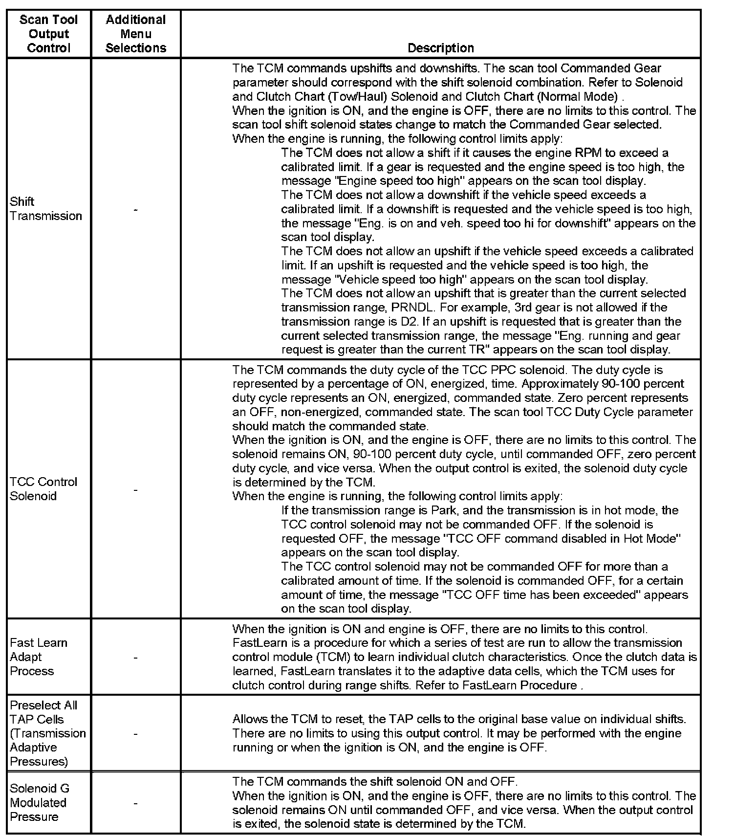Scan Tool Output Controls