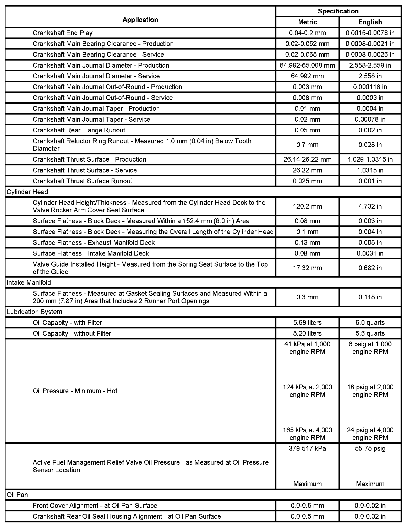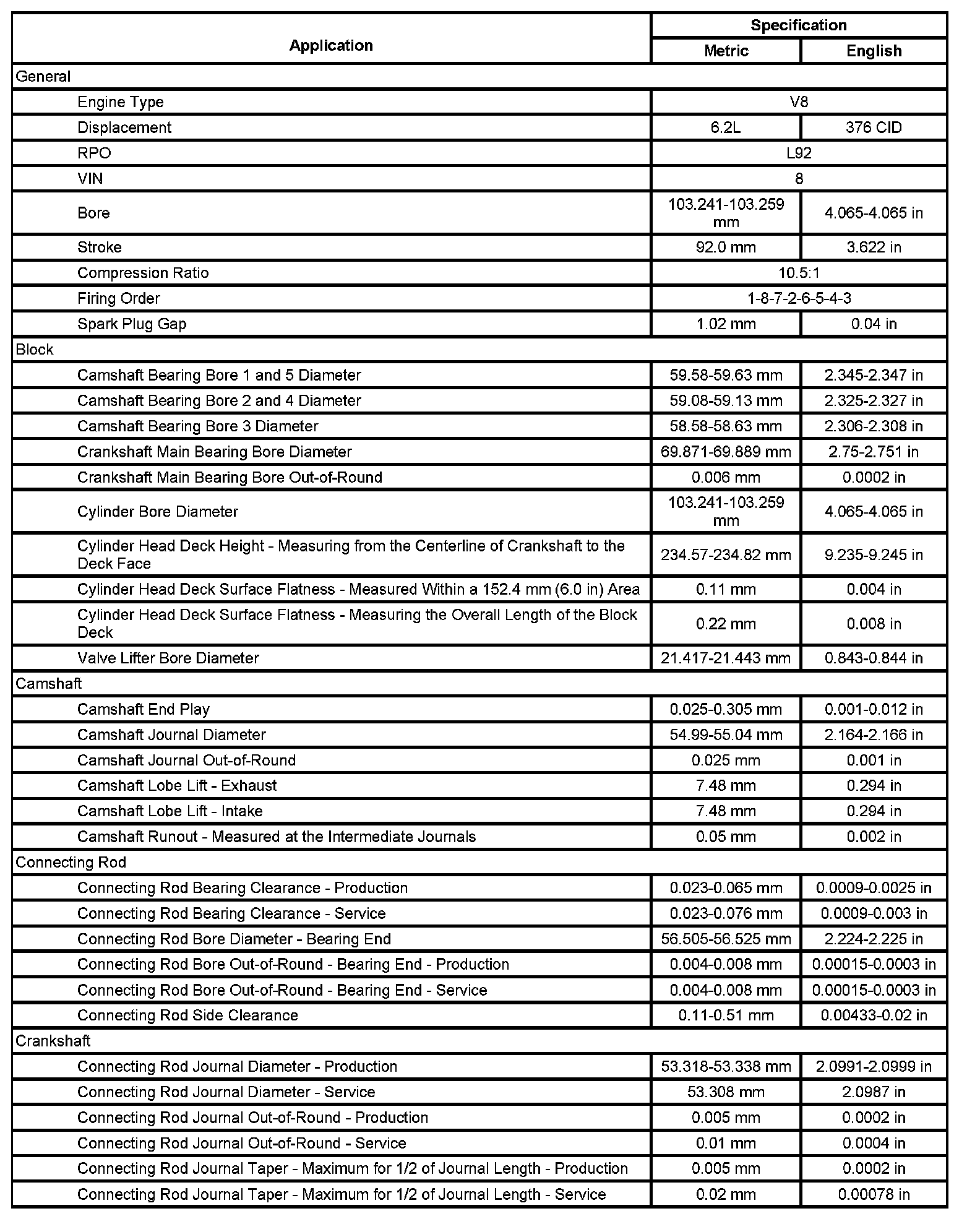 Engine Mechanical Specifications (RPO L92 VIN 8) (Part 3):