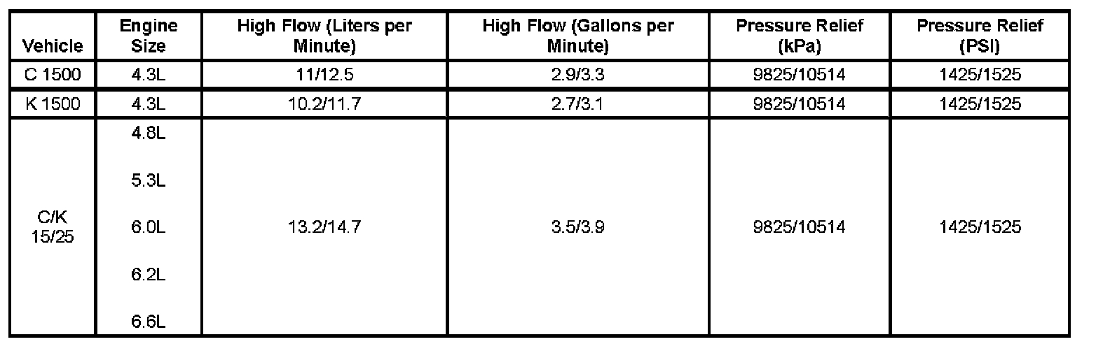 Power Steering Pump Specifications: