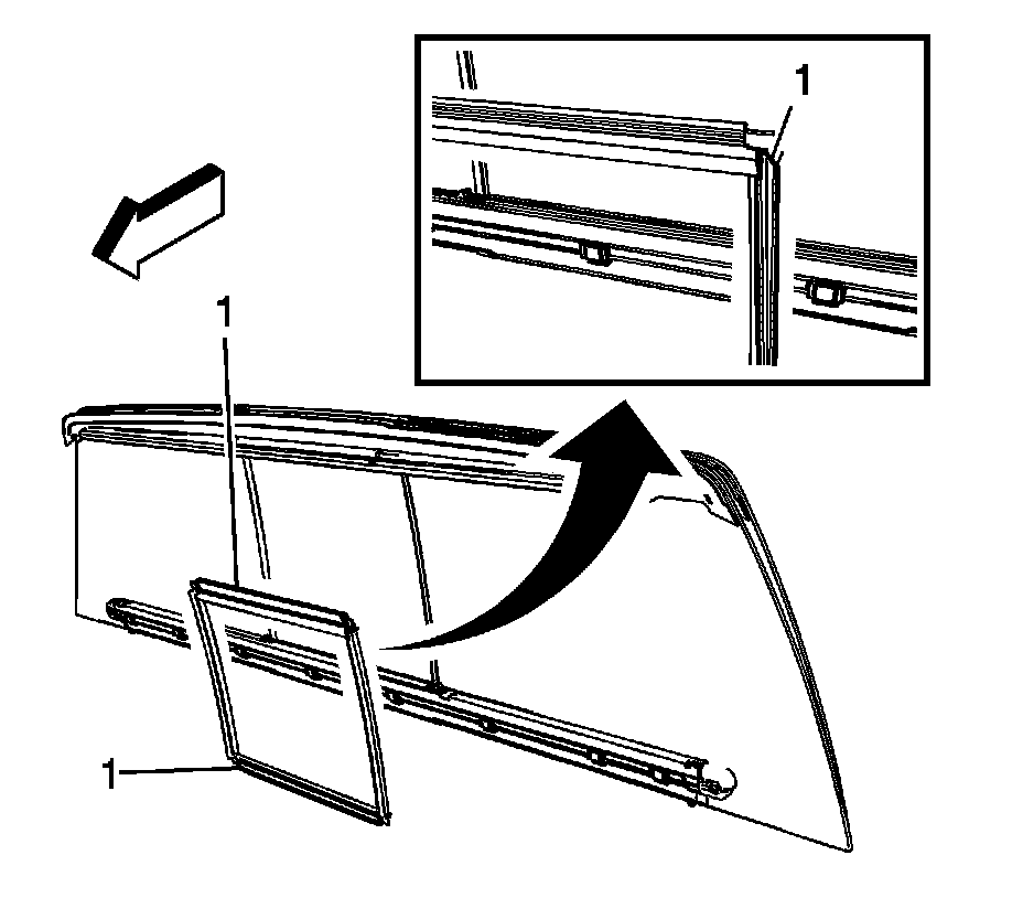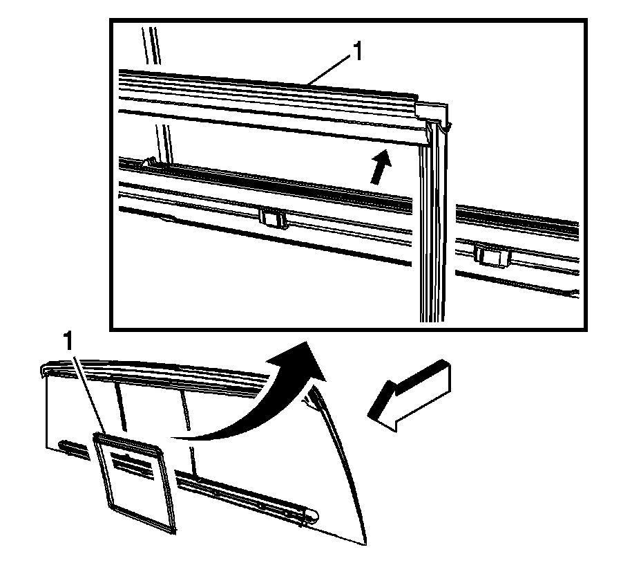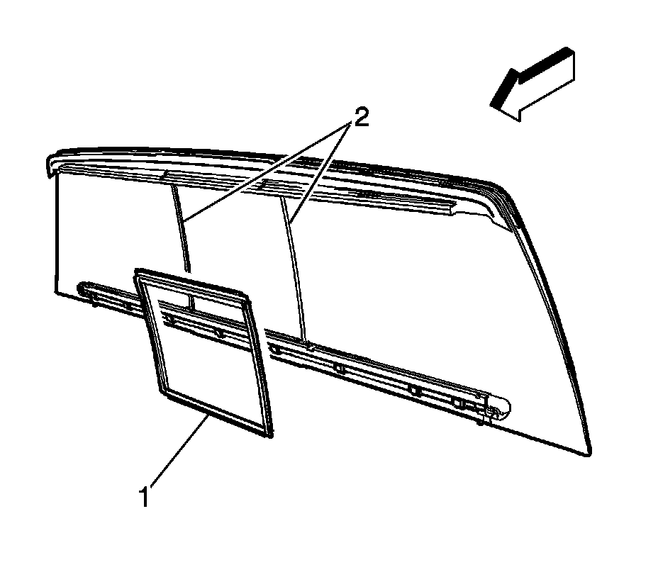 2. Remove the rear sliding window weatherstrip (1) from the frame (2).