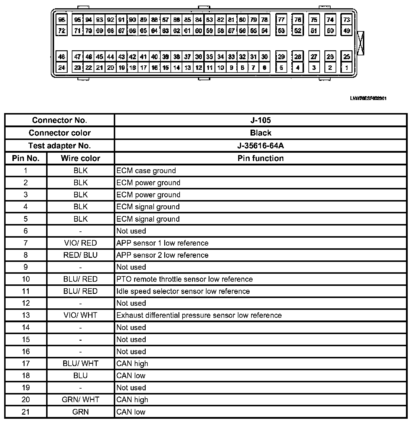 Engine Control Module (ECM) Connector End Views