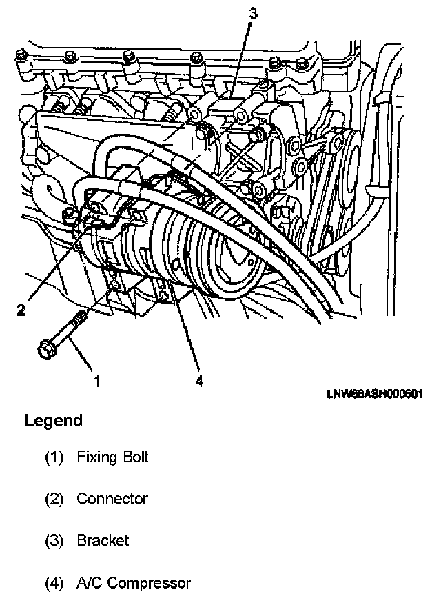 - Remove the A/C compressor and fix it with wire etc. to an appropriate place along with hoses.