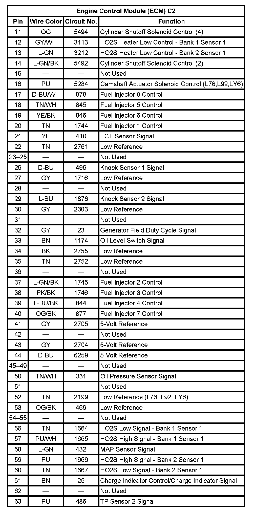 Engine Control Module (ECM) C2 (Pin 11 To 63):
