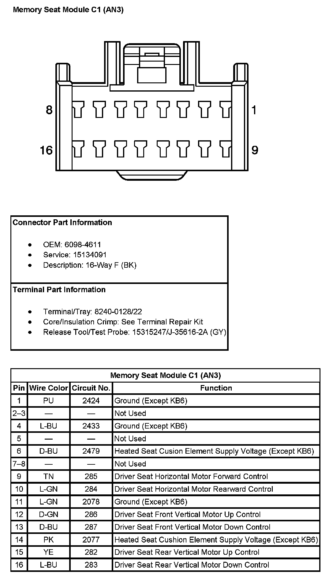 Memory Seat Module C6 (With RPO Code AN3):