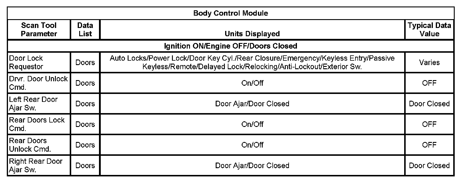 Scan Tool Data List