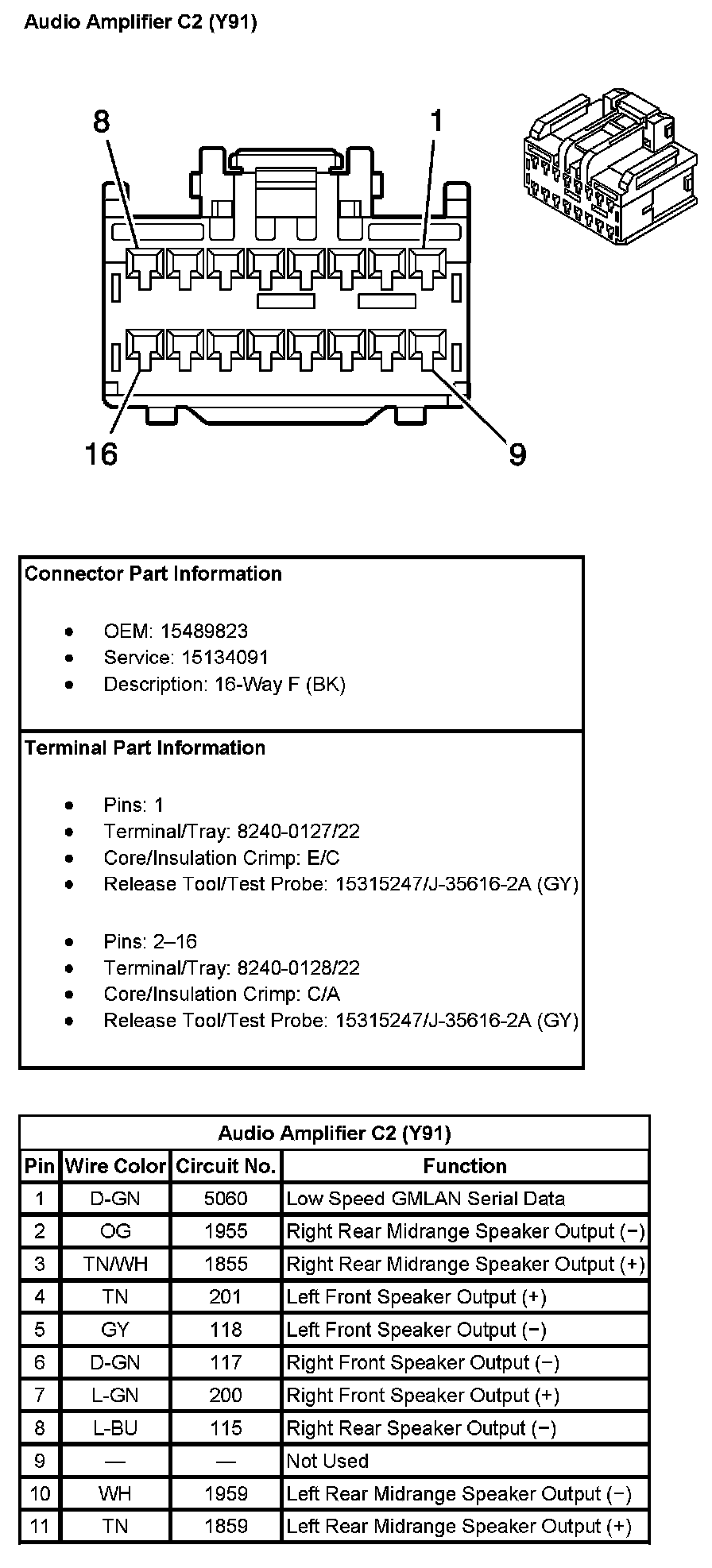 Audio Amplifier C2 (With RPO Code Y91) (Pin 1 To 11):