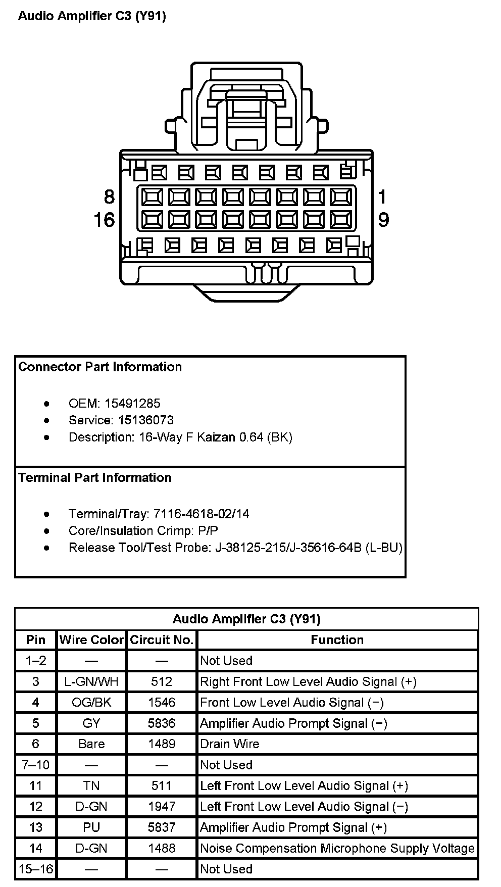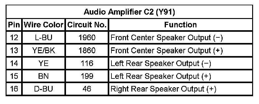 Audio Amplifier C2 (With RPO Code Y91) (Pin 12 To 16):