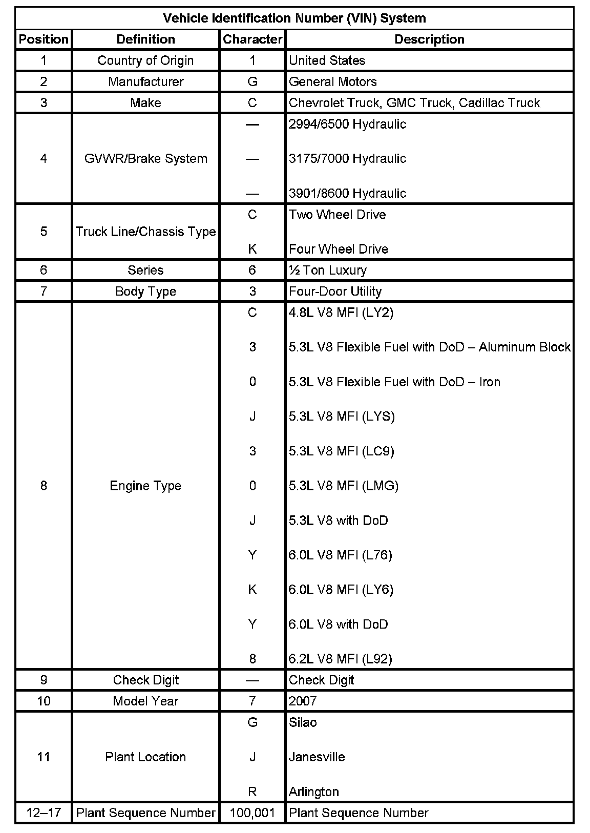 Vehicle Identification Number (VIN) System: