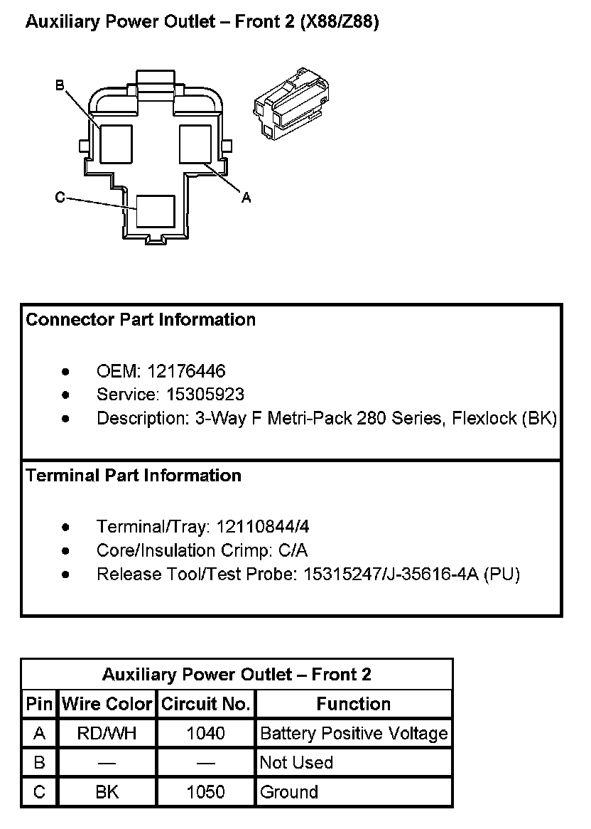 Auxiliary Power Outlet - Front 2 (With RPO Codes X88/Z88):