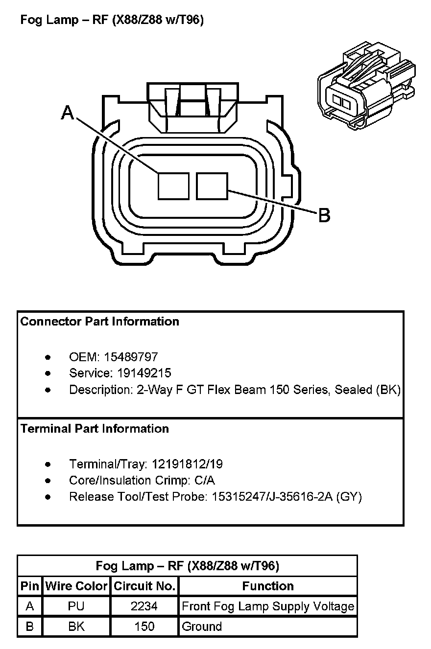 Fog Lamp - RF (With RPO Codes X88, Z88 And T96):