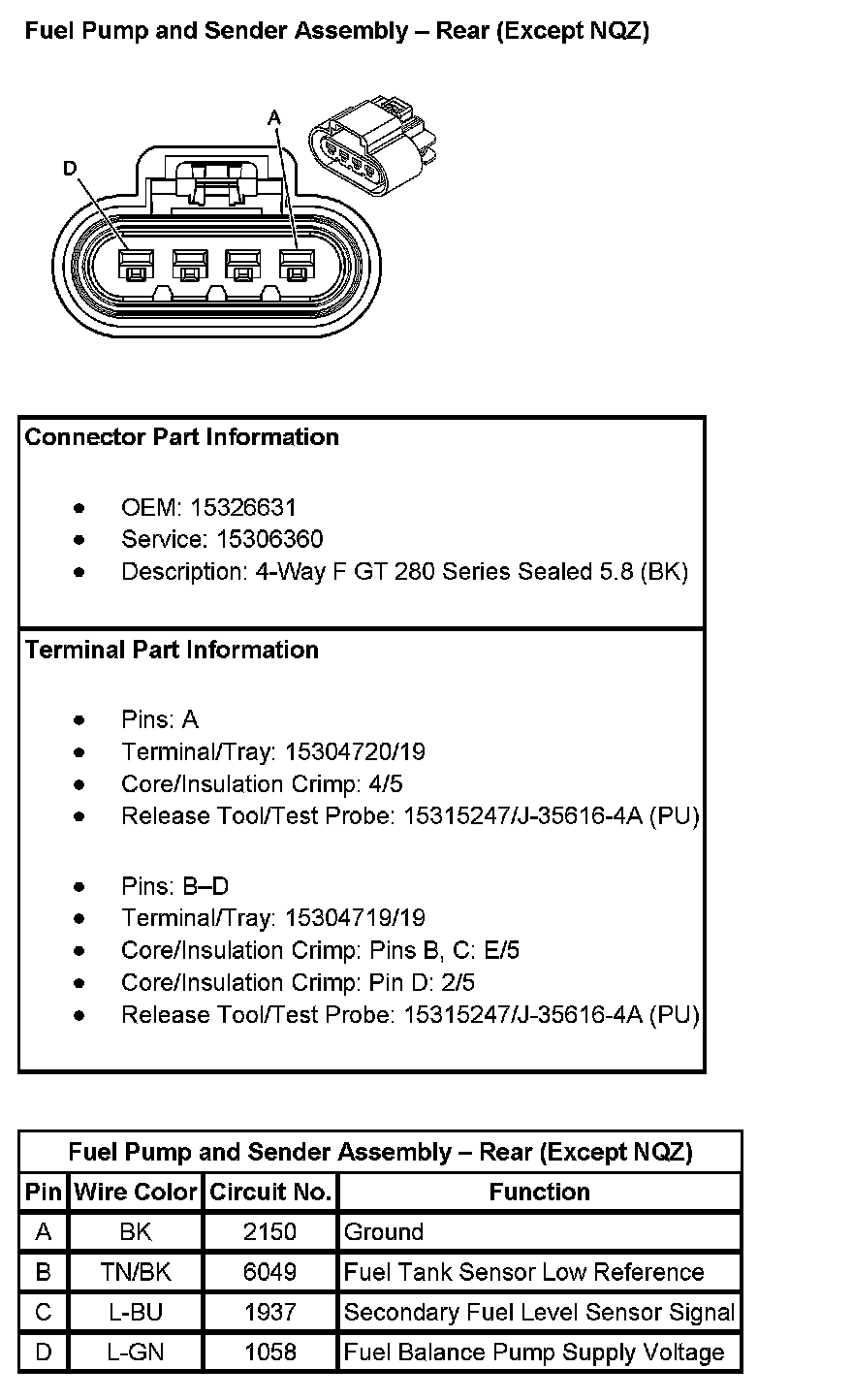 Fuel Pump And Sender Assembly - Rear (Except RPO Code NQZ):
