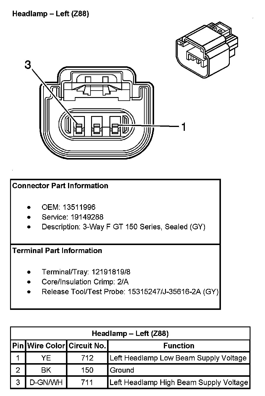 Headlamp - Left (With RPO Code Z88):