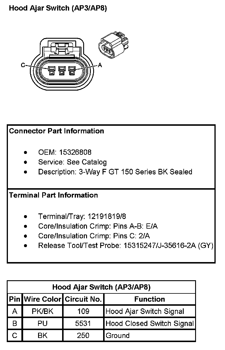 Hood Ajar Switch (With RPO Codes AP3/AP8):