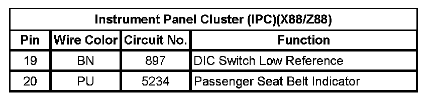 Instrument Panel Cluster (IPC) (With RPO Codes X88/Z88) (Pin 19 To 20):