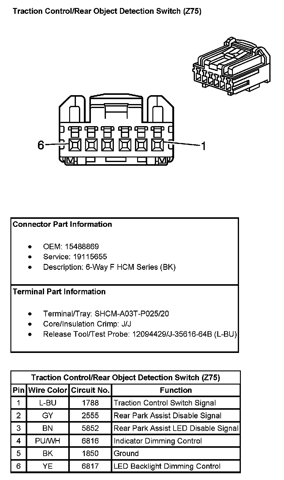 Traction Control/Rear Object Detection Switch (With RPO Code Z75):