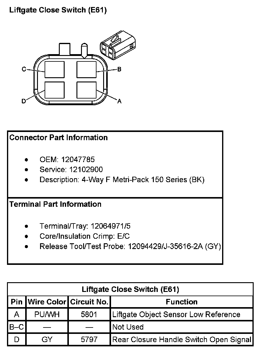 Liftgate Close Switch (With RPO Code E61):
