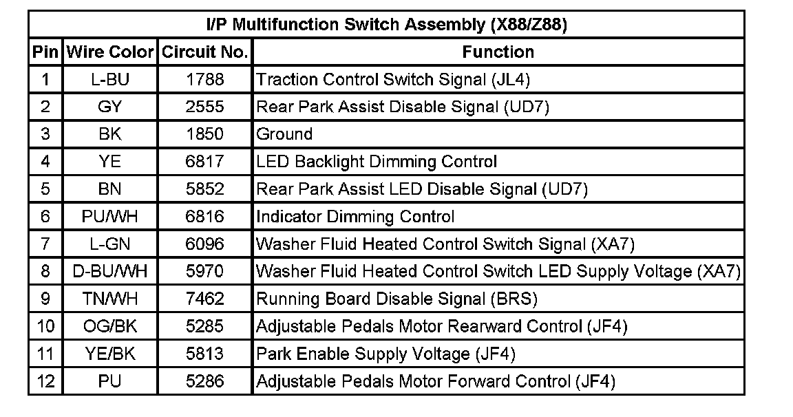 I/P Multifunction Switch Assembly (X88/Z88):