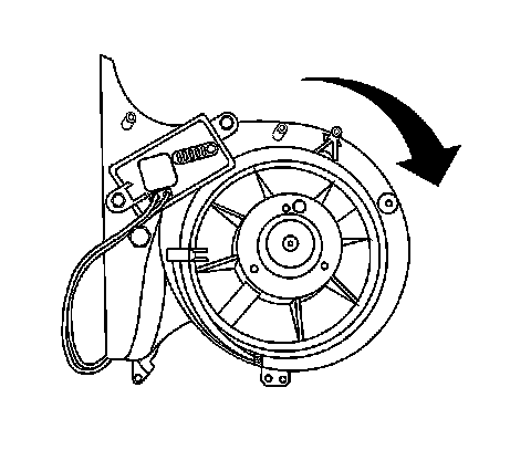 2. Install the blower motor to the heater/ventilation module. Turn the blower assembly clockwise until the retaining tab locks into place.